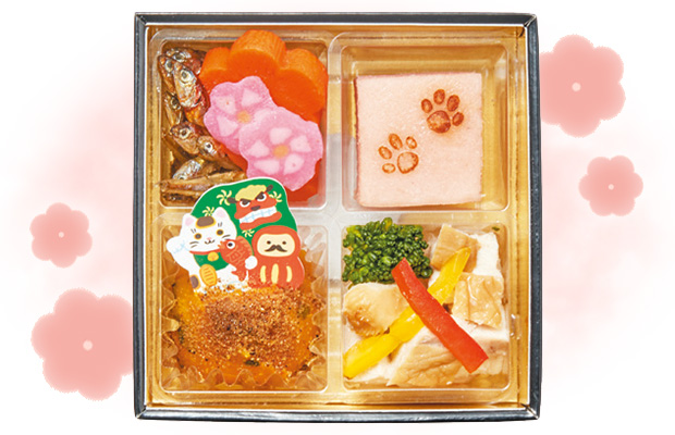 カタログには掲載されていない、「犬とネコのおやつ・ごはん研究家 Deco」監修のネコちゃん・ワンちゃん用おせちを3種類取り揃えました。