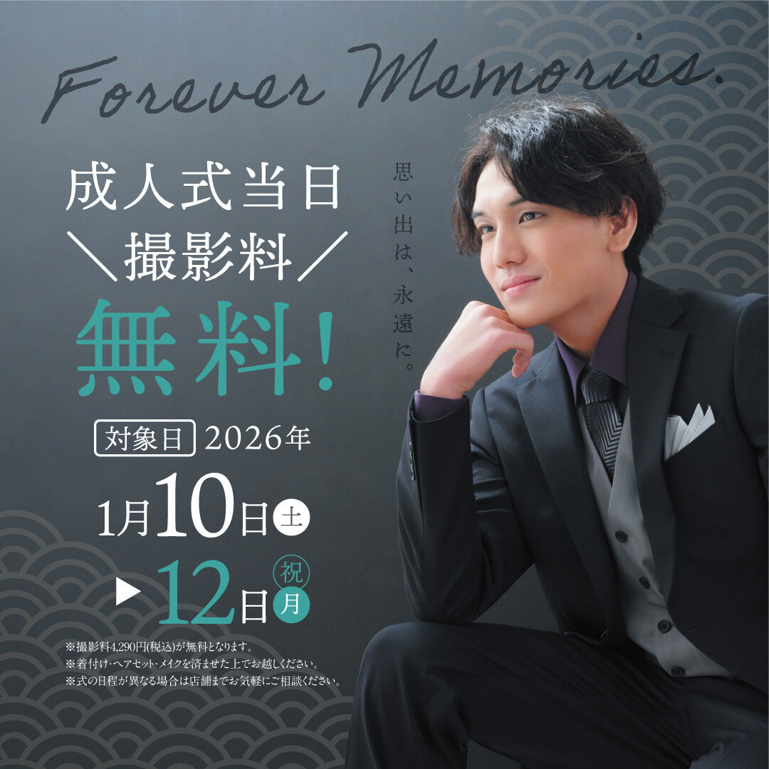 ◇★成人式当日の晴れ姿を記念に残しませんか? ご成人おめでとうございます。 スタジオアリスでは2026年1/10(土)~1/12(月・祝)の3日間、 ご本人にとっても、ご家族の皆様にとっても、喜ばしい記念です。 大きく成長されたお子さまの成人のお祝いの日が特別な一日になりますよう、