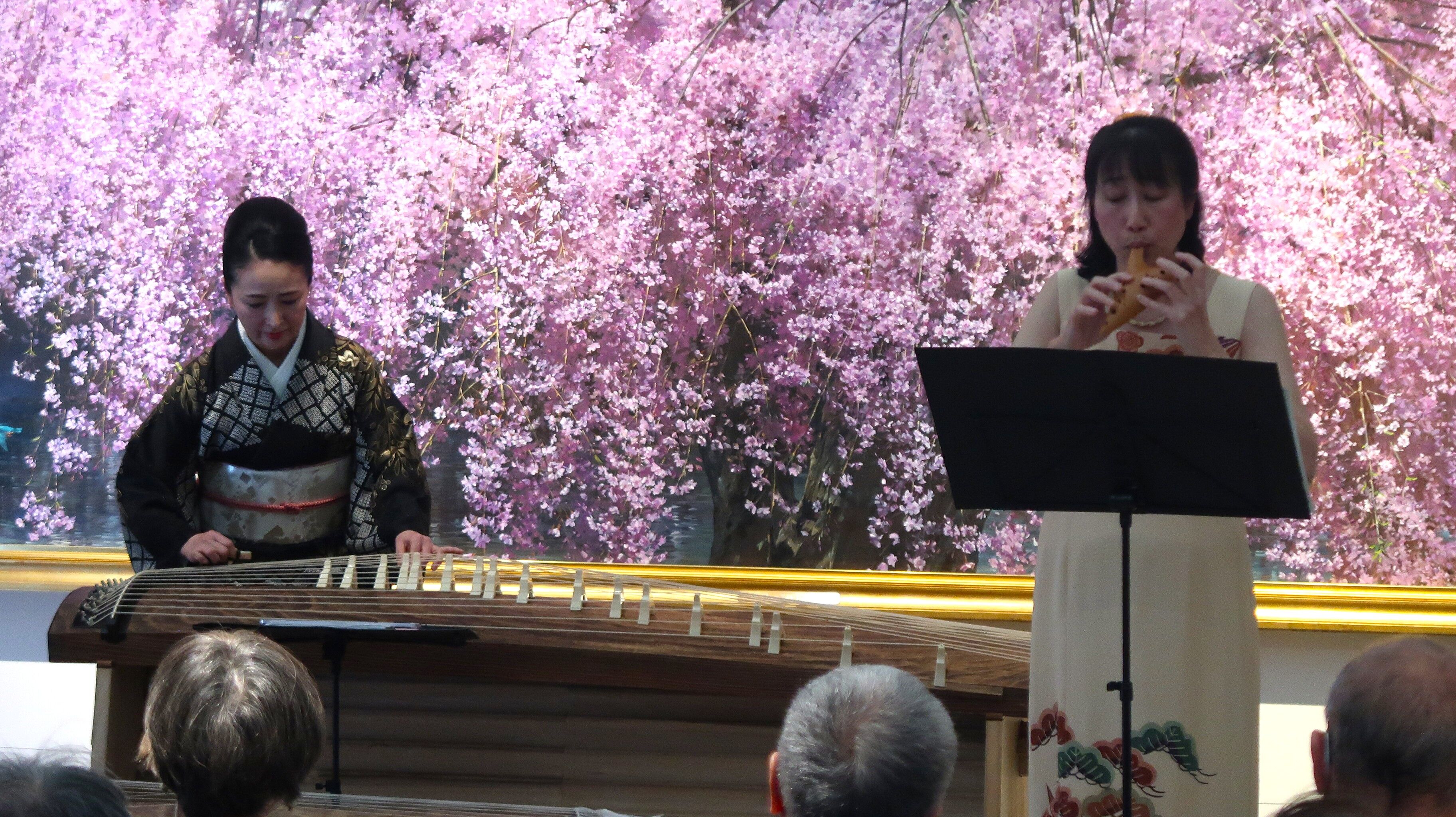 てるみコンビです。お名前は同じでも奏でる楽器は「洋と和」と異色のコラボ!背の高い新原さんと小柄な高橋さんと本当に興味が尽きないお二人のコンサートは、歌会始めの為に作られた「春の海」から始まり、クラッシックから童謡まで幅広い選曲でワクワクする楽しいコンサートでした。