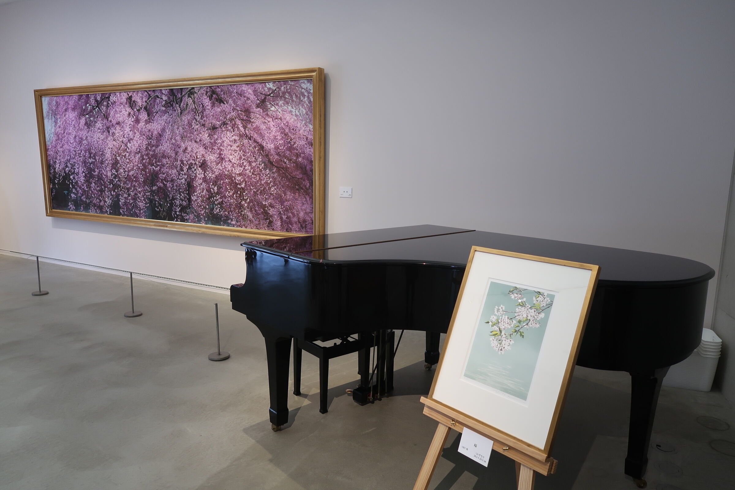 三栖右嗣先生のしだれ桜の絵画(爛熳)と共にピアノの生演奏に触れてみてはいかがでしょうか?