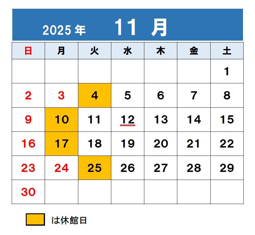 誠に勝手ながら 11月12日(水)は16時30分(最終入館16時)にて閉館させて頂きます。