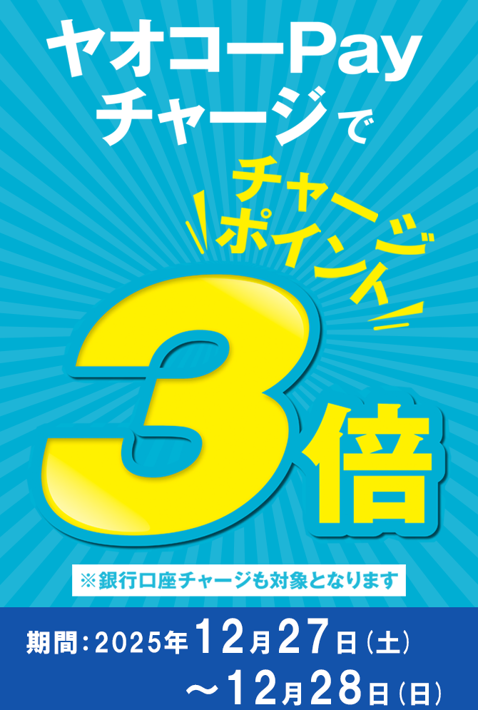 ・対象期間にヤオコー店舗、または銀行口座チャージにてヤオコーPayチャージをした方全員